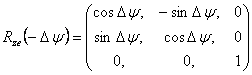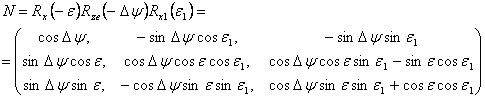 Matice transformace ze střední rovníkové soustavy do rovníkové soustavy, tzv. nutační matice N, je součinem tří matic rotace: