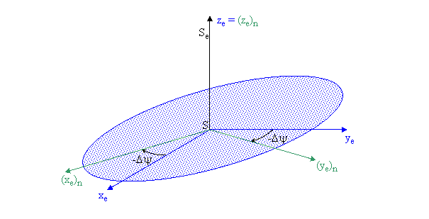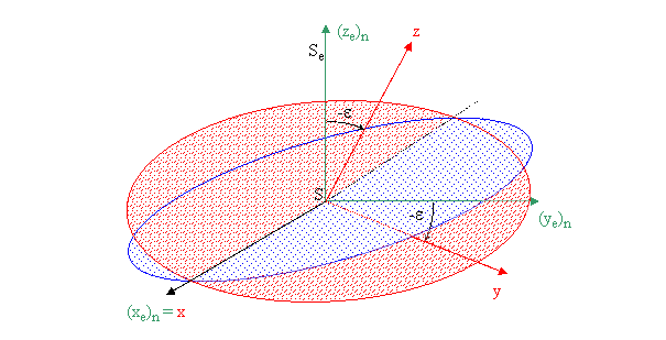 změněnou zemskou osou a x prochází posunutým jarním bodem.